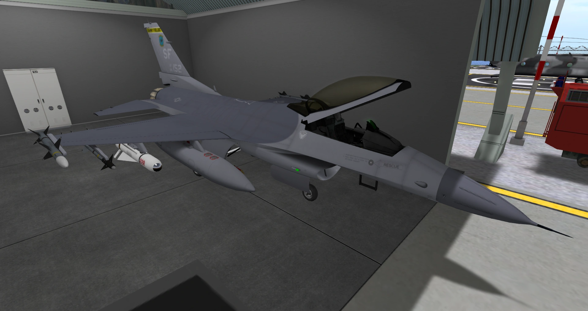 - VICE combat system with: AIM7 (air to air guided missile), GBU24 (air to ground guided bomb), AIM9 (air to air guided missile) and AGM65 (air to ground guided missile).